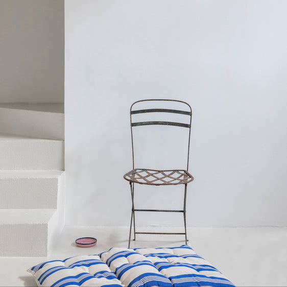 Cojín cuadrado de algodón de rayas azul índigo y crudo x Tensira