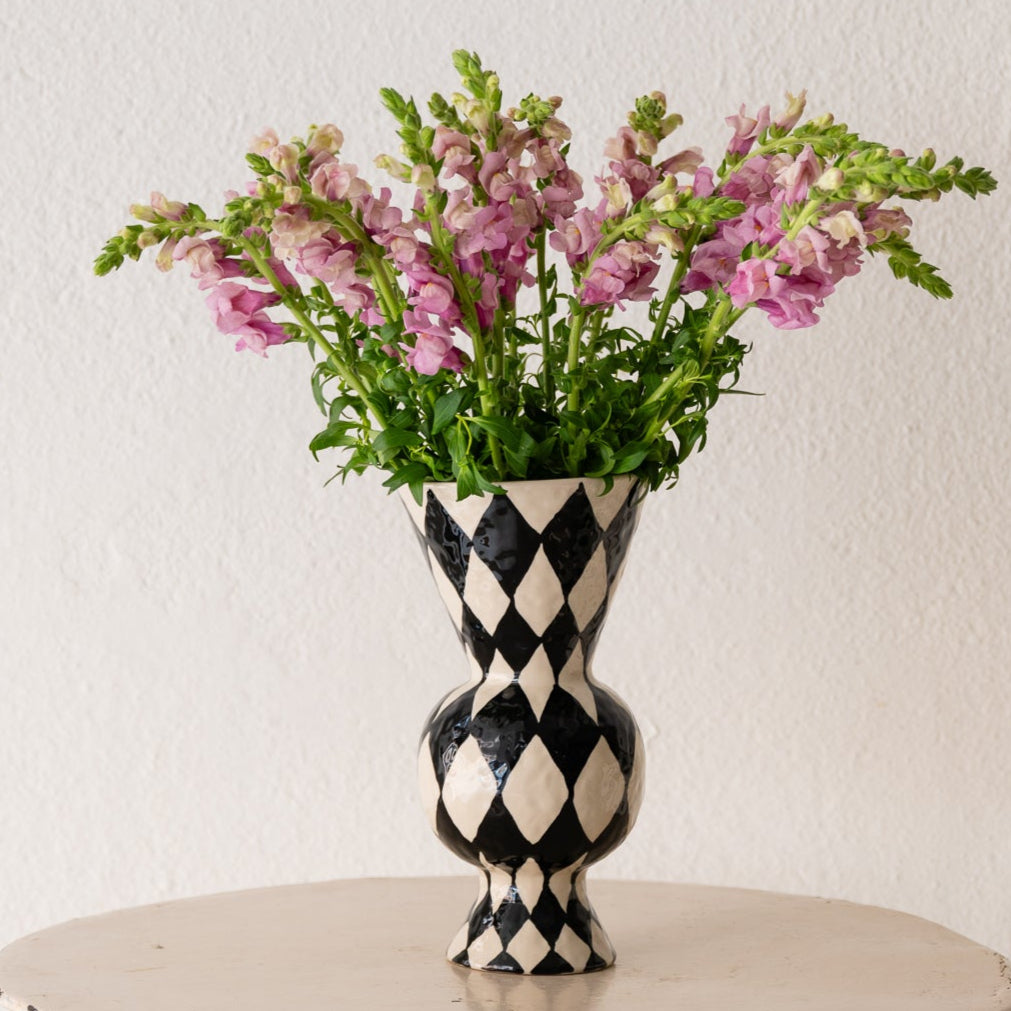 Jarrón 'Alicia' de rombos negro