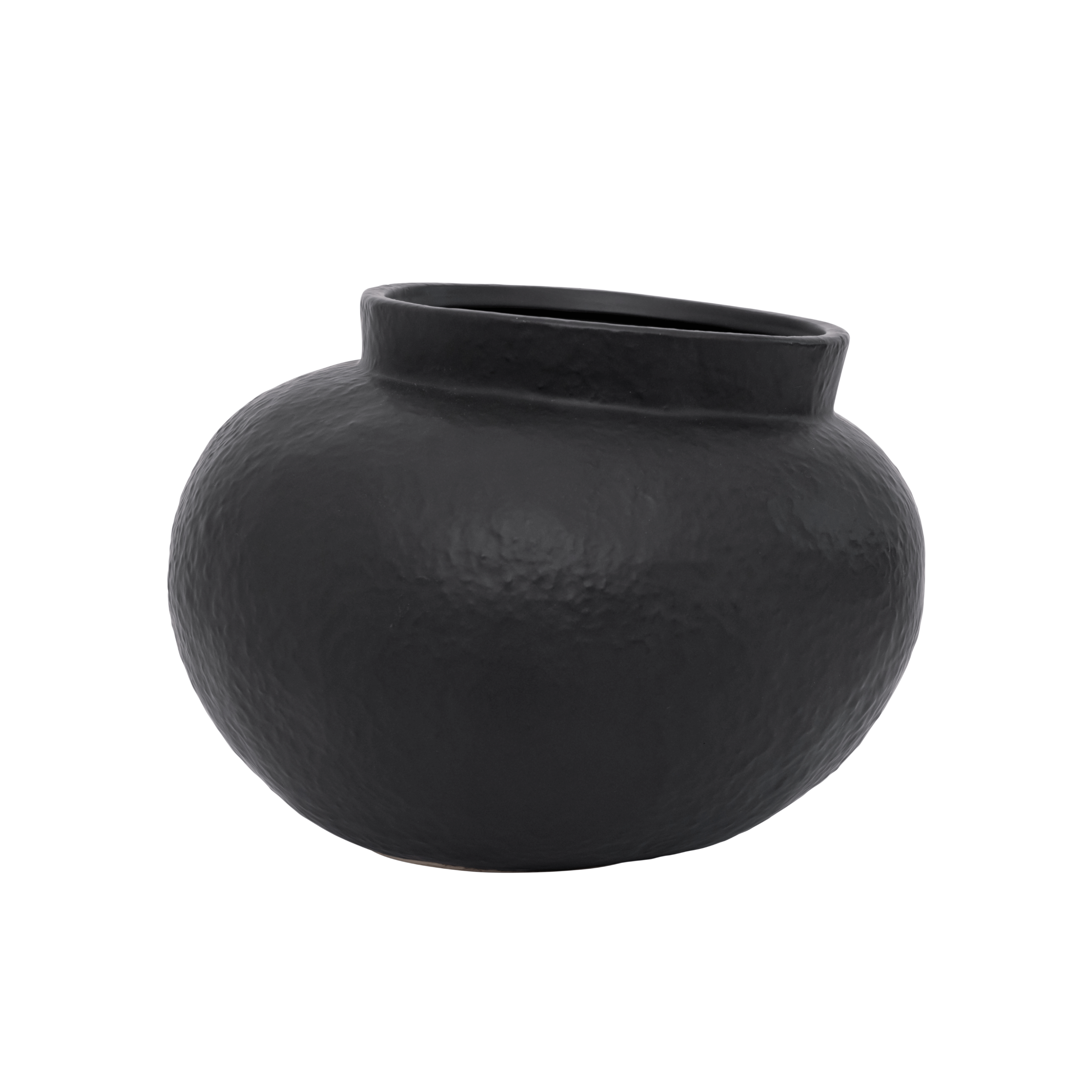 Cada objeto, cada forma y, por supuesto, cada persona tiene su propia belleza. Este jarrón de cerámica en color negro tienen una silueta única, perfectamente imperfecta, con un acabado rugoso muy orgánico. Es un objeto que por su forma y color invita a la relajación y a la armonía, evoca la calma de la inmensidad del desierto o del mar.
