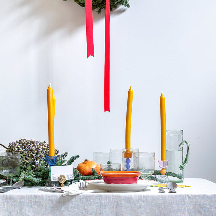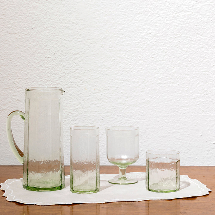 Combínala con nuestros vasos en dos tamaños y copas a juego para completar un conjunto armonioso que llenará tu mesa de luz y estilo.