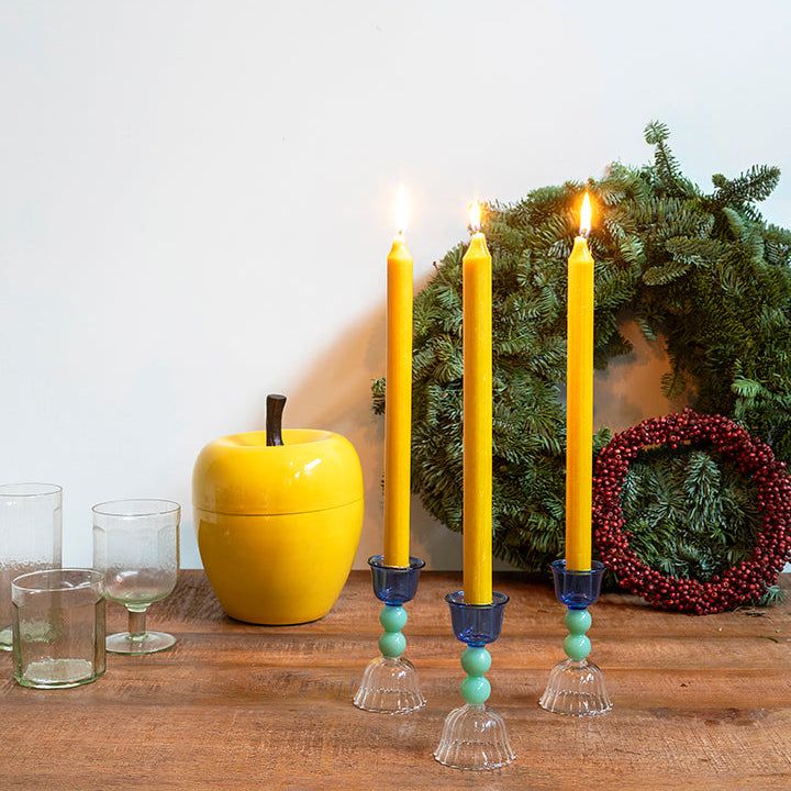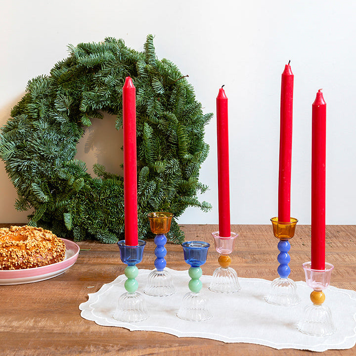Lo vemos genial para mesas especiales, como en una mesa navideña aportando la calidez en un día festivo. Nos parece perfecto combinado con el resto de portavelas de la misma colección en distintos tamaños y colores. Y si te gustan nuestros packs de 4 velas rústicas de colores, tendrías la combinación perfecta.