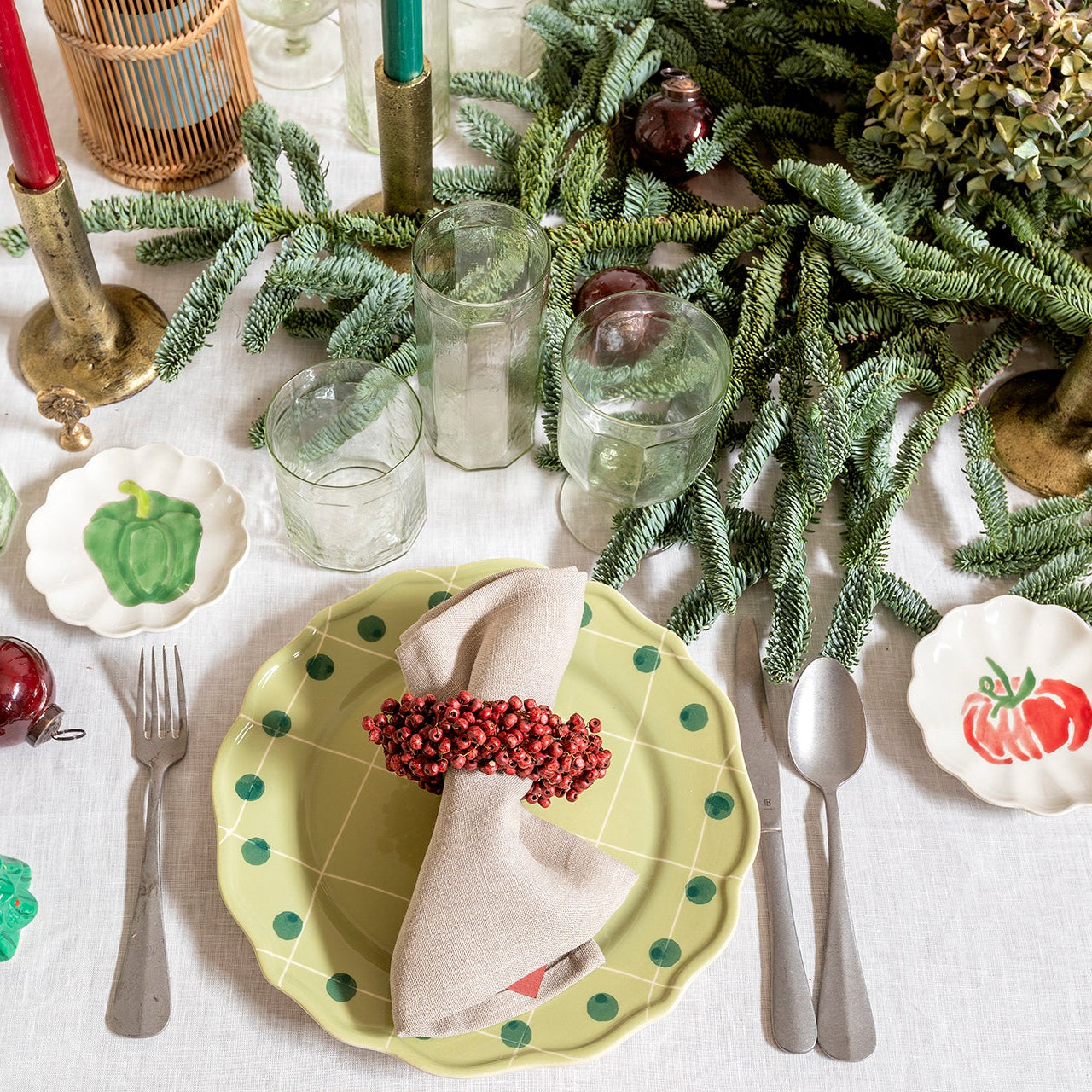 Lo vemos único para mesas de Navidad, ya que su tono dorado realza la decoración festiva. Y combinado con el 'Candelabro dorado Haut' se consigue un efecto cálido muy especial.